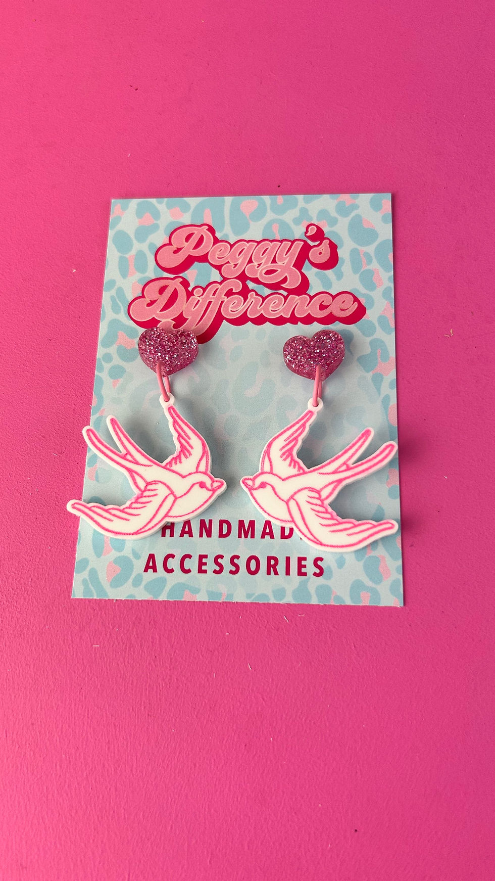 Black Swallow Birds Love Heart Earrings - Matching Necklace Available